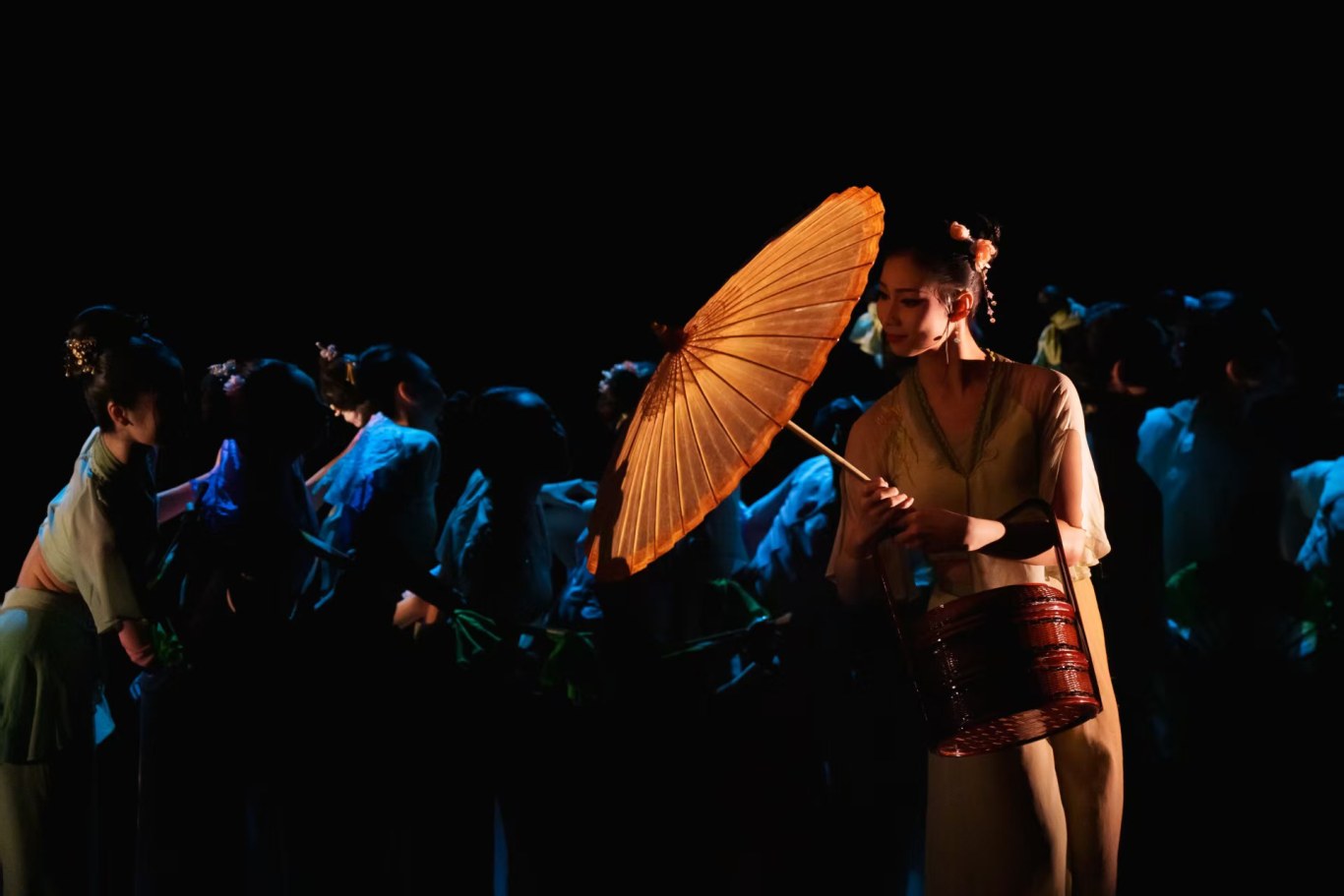 群舞《太平有象》以云南亚洲象群北上南归的故事为原型,用云南特点鲜明的傣族舞蹈元素为主基调,讲述大象北迁南归、与人类和谐共处的故事。
